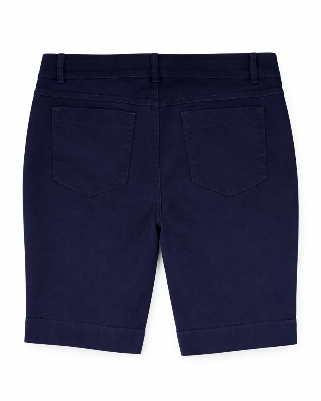 O jeans azul marinho é um clássico atemporal: combina com praticamente todas as cores e transita do casual ao chic com facilidade. Basta mudar os acessórios para levar a mesma bermuda de um passeio diurno com tênis para um look noite com salto e clutch.