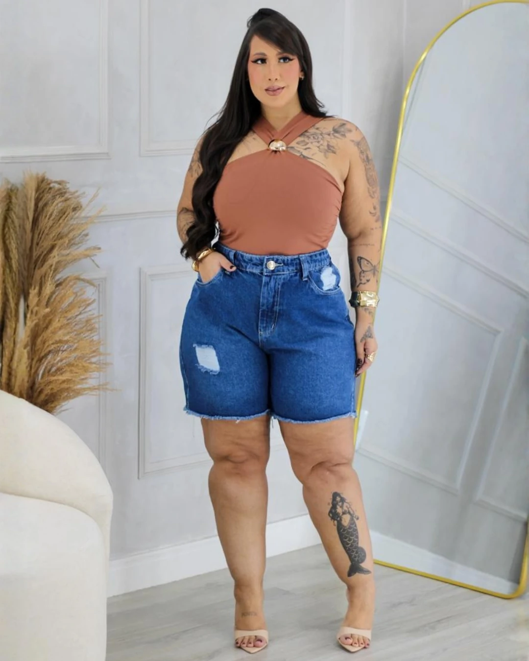 💡 Como usar o Short Jeans Plus Size Cós Elástico Barra Desfiada