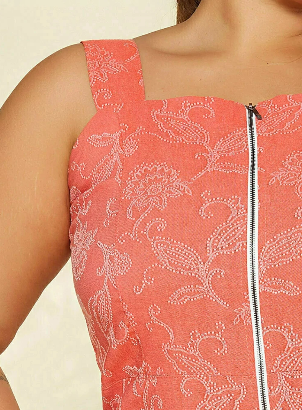 Com toque macio, boa respirabilidade e estrutura leve, o vestido oferece excelente caimento e conforto ao longo do dia. O zíper frontal funcional agrega praticidade e estilo, enquanto as alças largas e o decote reto garantem segurança e valorização do corpo.