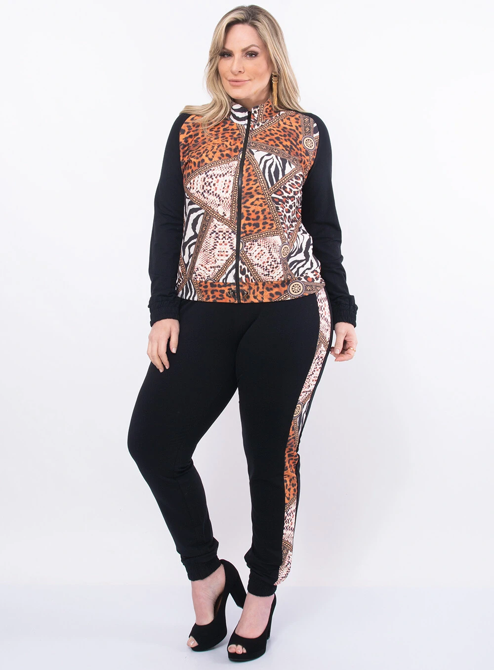 Conjunto Plus Size Cropped e Jaqueta Animal Print