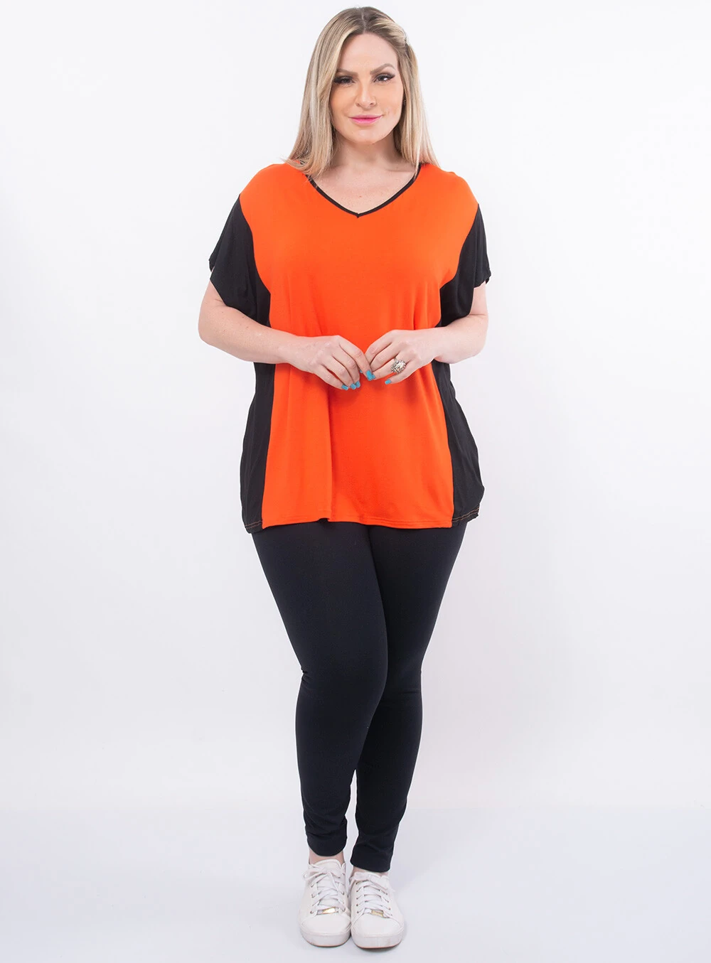Blusa Plus Size Gola Padre Manga Morcego em Viscolycra