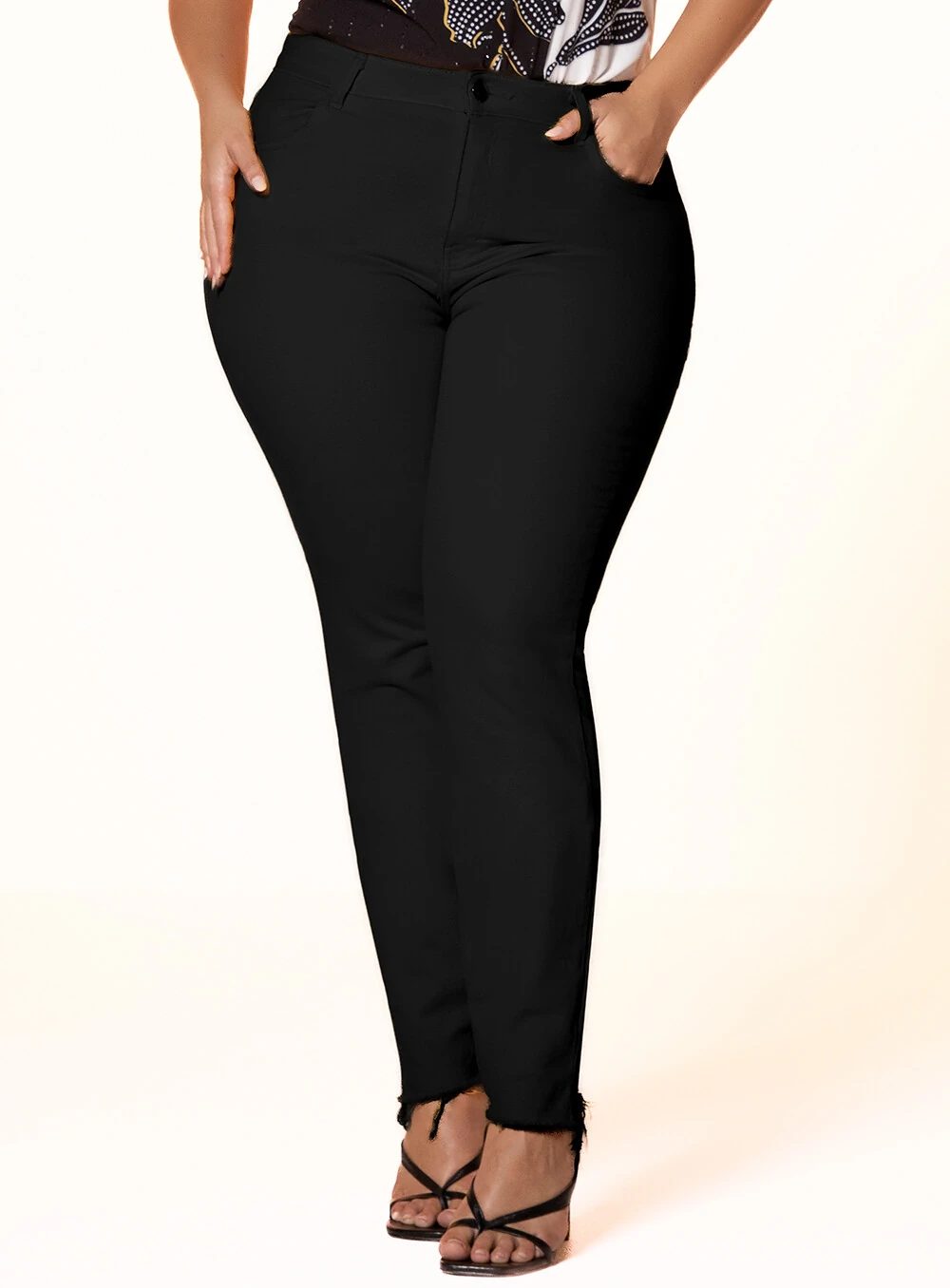 Calça Skinny Plus Size Vincada em Malha Crepe Encorpada