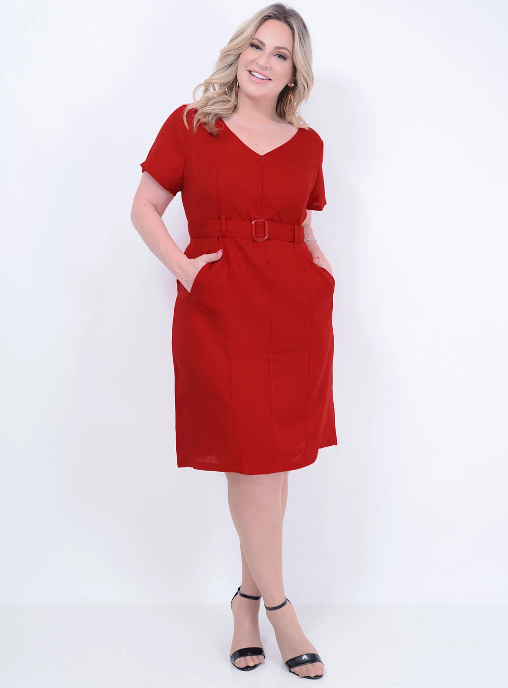 Vestido Curto Plus Size com Cinto com Detalhe Prata