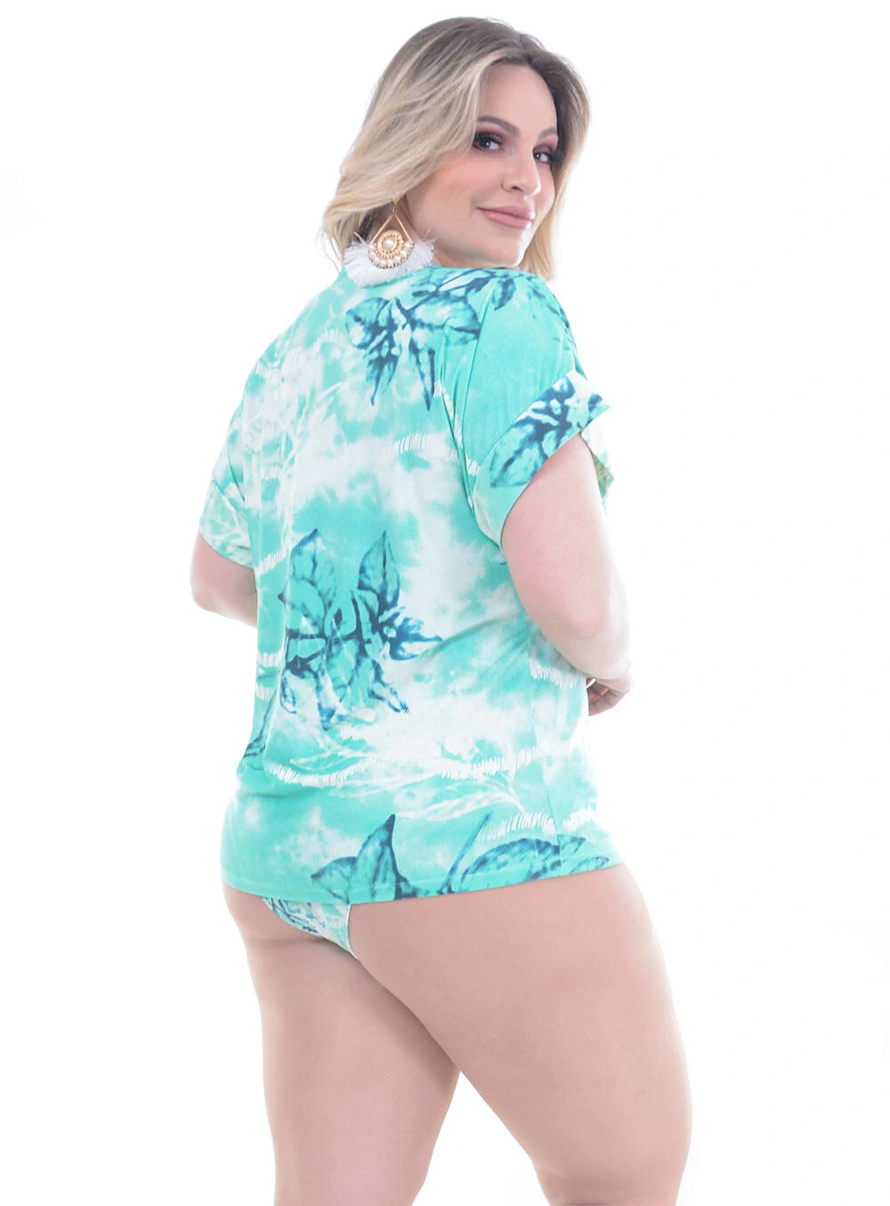 Blusa Plus Size em Viscolinho com Detalhe na Manga
