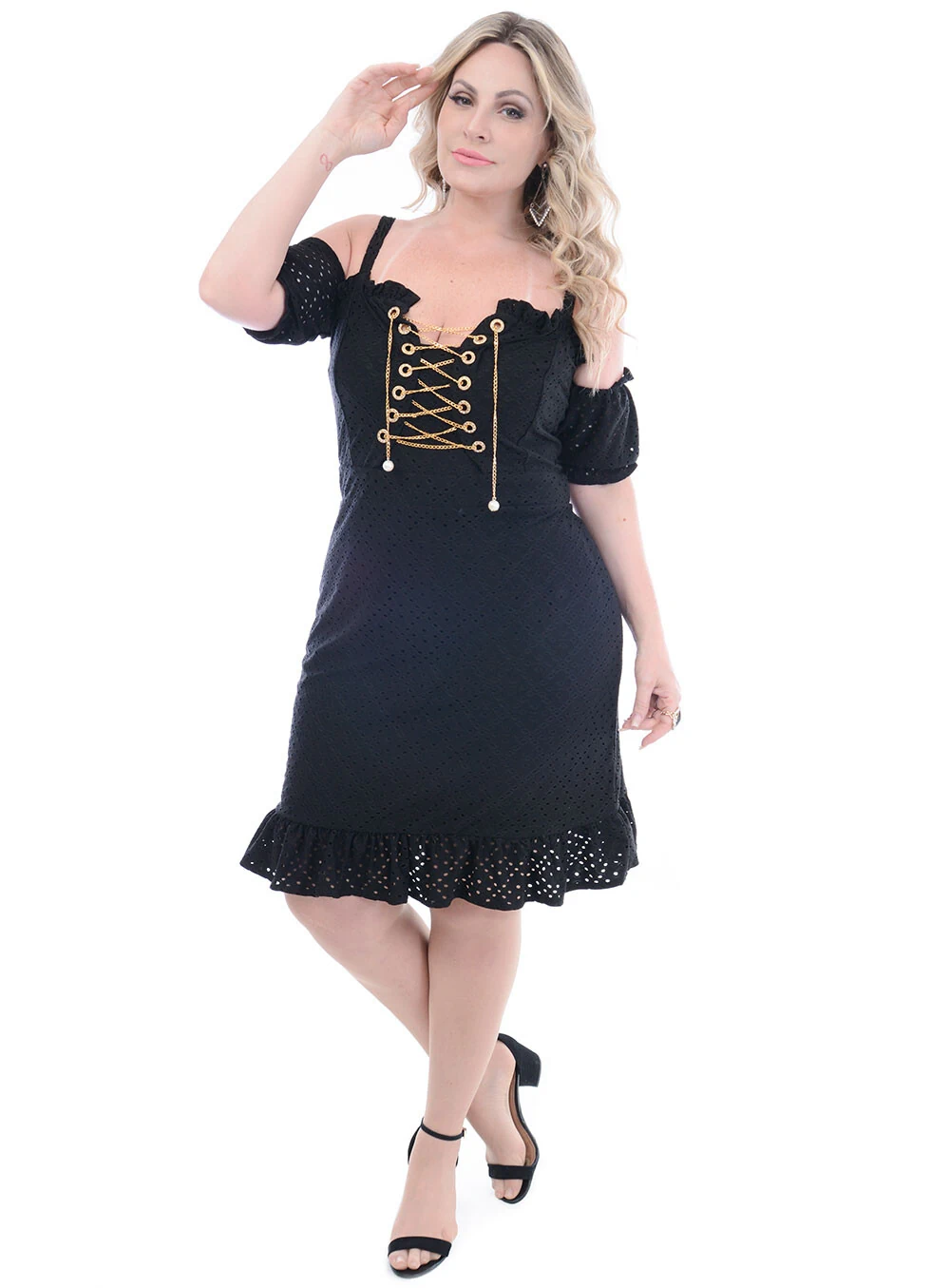 Vestido Plus Size Curto em Tela Brilhante com Marabu