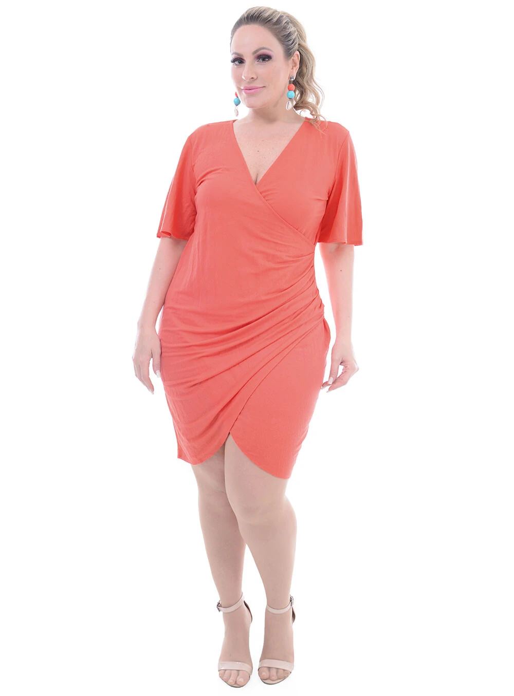 Vestido plus size em malha pique light de viscose.