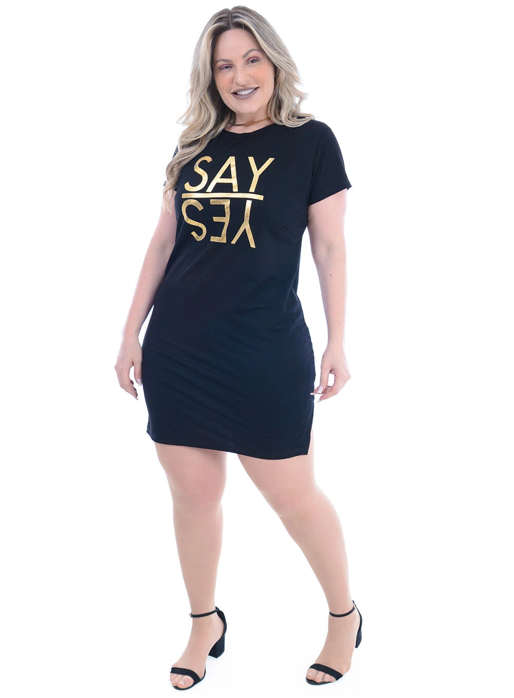 Detalhe em estampa silk frontal e pequenas fendas na barra.