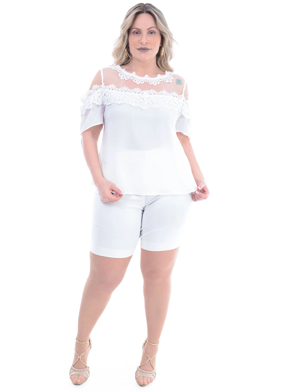 Blusa Lisa Plus Size com detalhes de Renda com Babadinhos