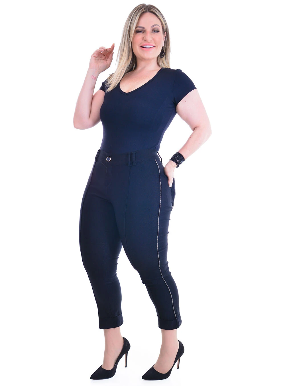 Calça Plus Size Social Alfaiataria Cós Lapela