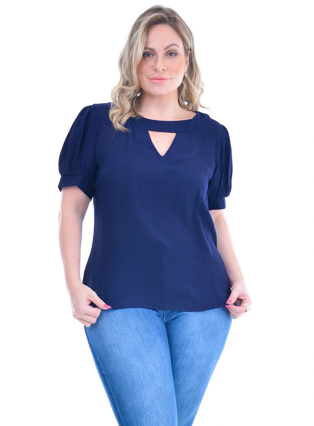 Blusa Long Cropped Plus Size Aplicação de Pedrarias