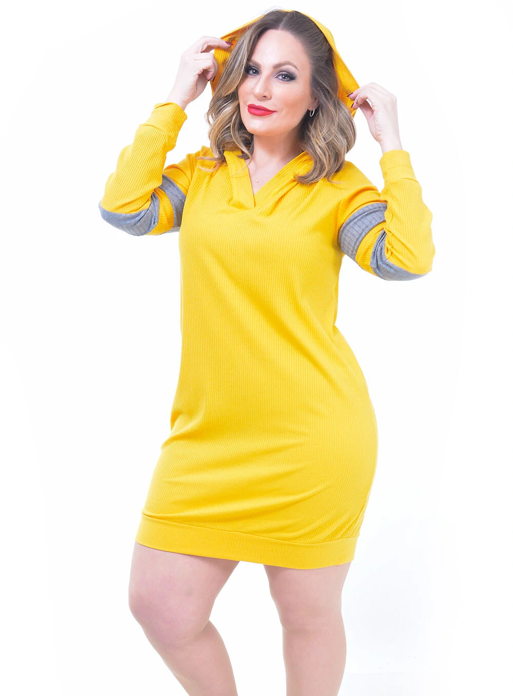Vestido Curto Plus Size Decote V Manga com Babado em Crepe