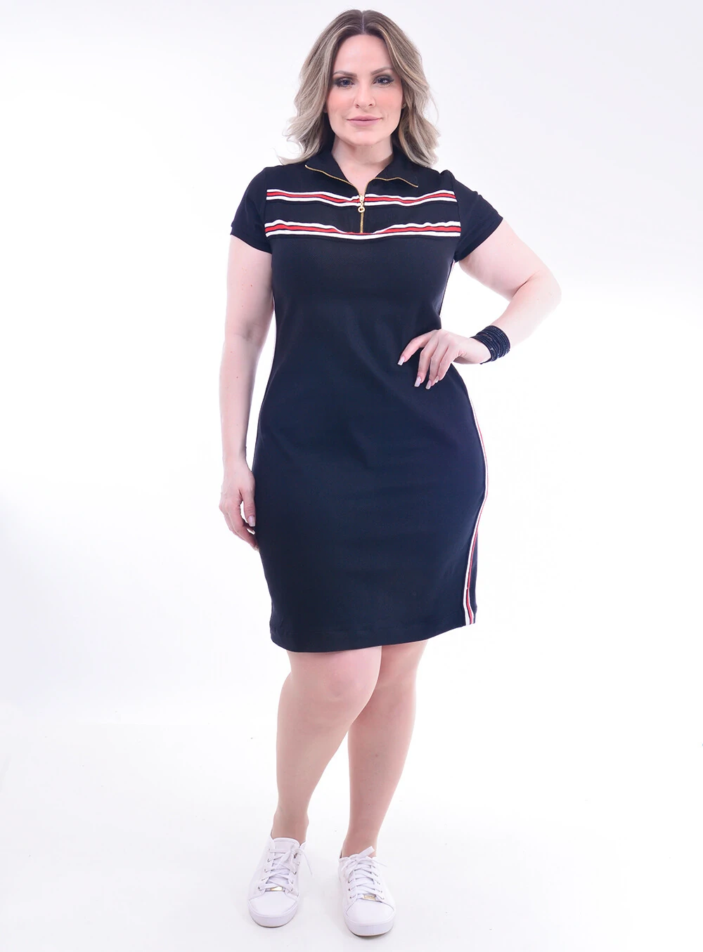 Vestido Evasê Plus Size Malha Canelada Gola Alta Malwee