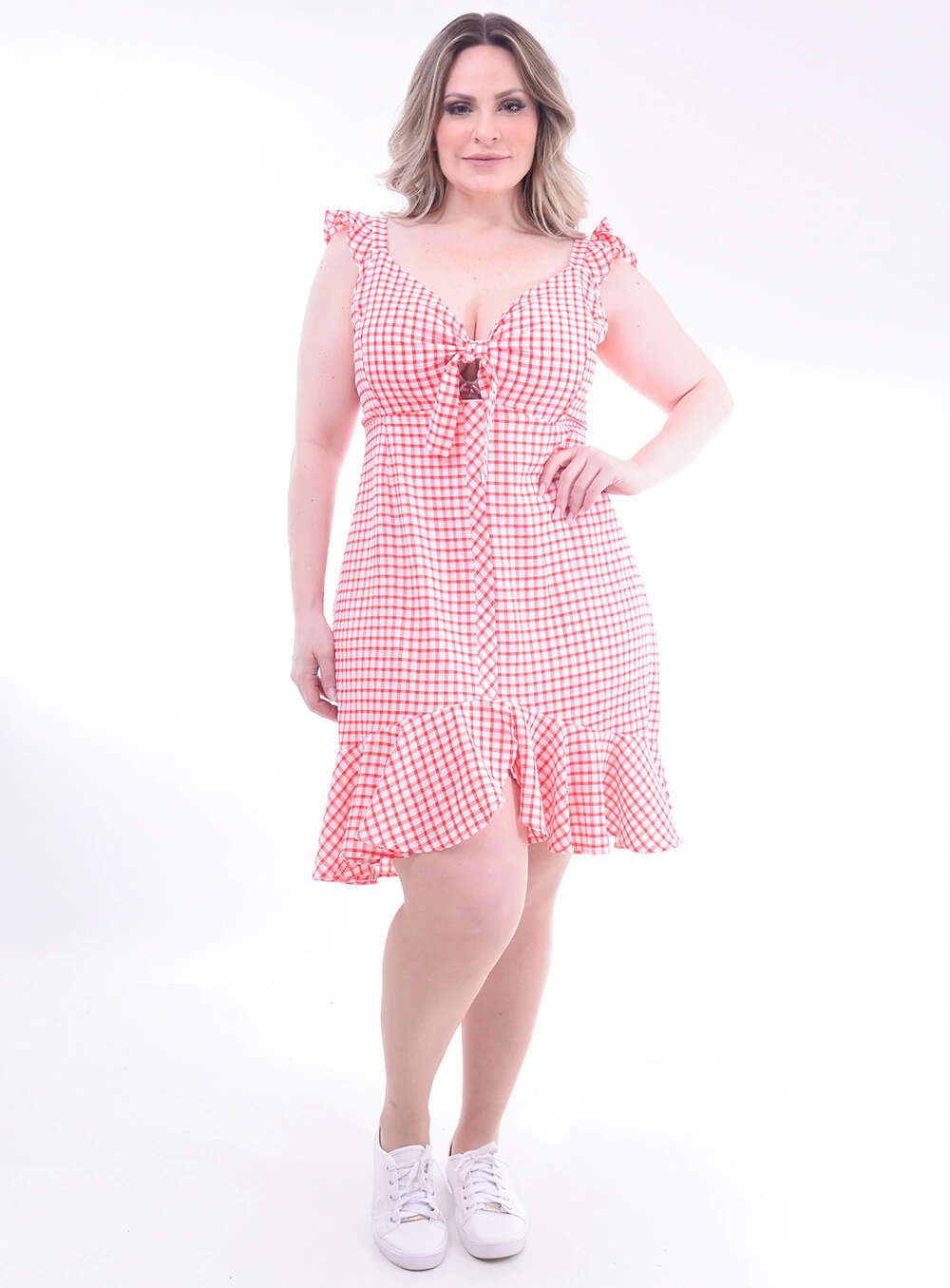 Vestido Plus Size Cachequer Estampado com Babados em Cetim Charmeuse