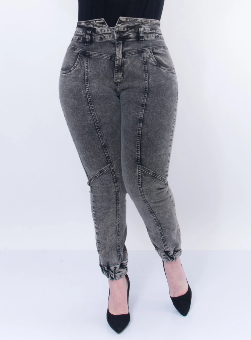 Calça Jogger Plus Size Jeans com Elastano