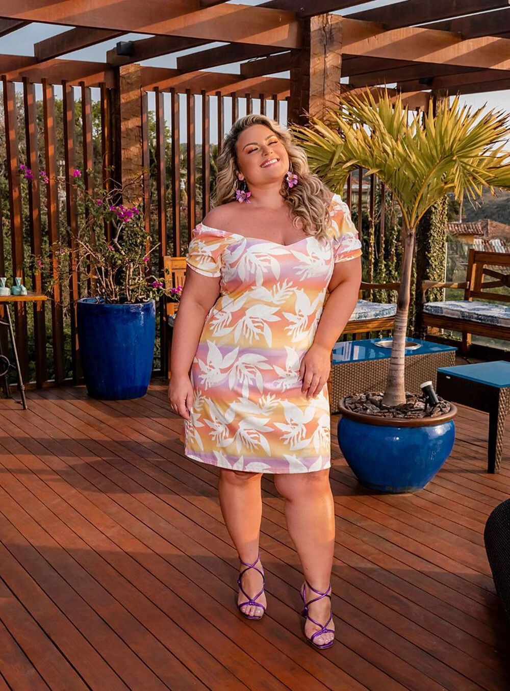 Modelo veste 46 e tem as seguintes medidas: 1,70 m de altura, 105 cm de busto, 88 cm de cintura, 118 cm de quadril, 74 cm de circunferência de coxa e 34 cm de curcunferência de braço.